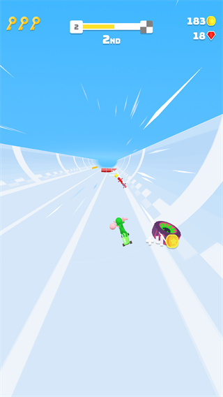 3、需要躲避赛道上的各种障碍物,并且同时还要拾取金钥匙,金币以及各种道具来加速;