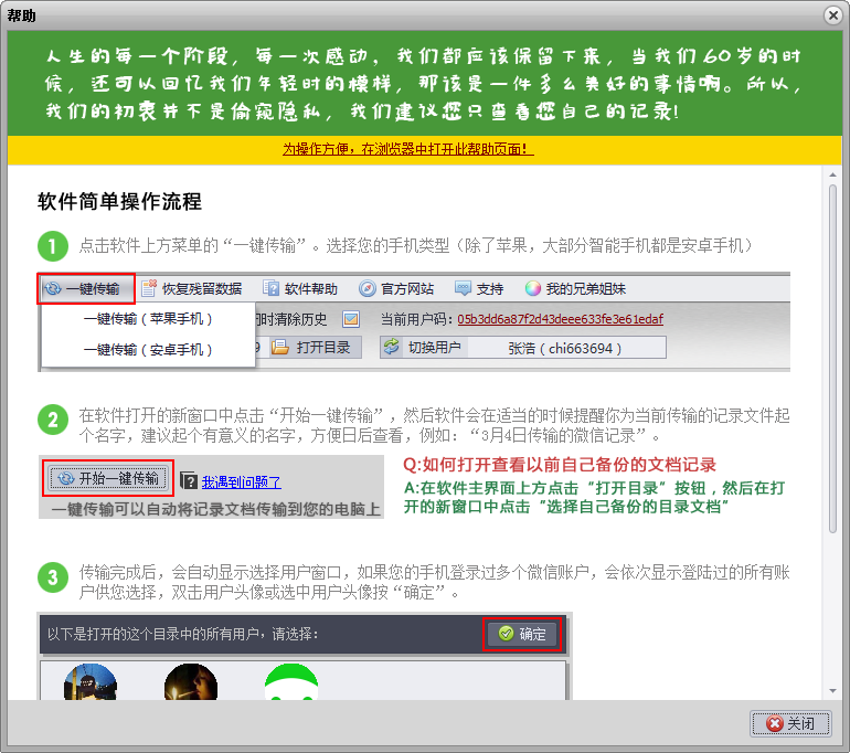 多用户集中管理查看,分别查看用户绑定QQ、邮箱、手机等...多帐号管理手机中登录的微信账户、聊天记录、语音图片。