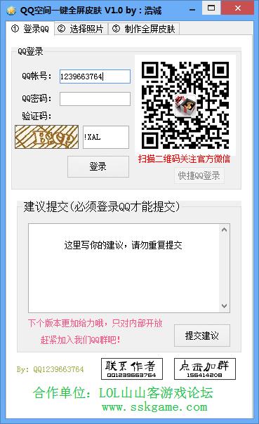 QQ空间一键全屏皮肤工具是一款由浩诚团队制作开发的2016最新空间换肤软件,这款软件可以帮助你一键全屏更换QQ空间皮肤,让你的QQ空间焕然一新。喜欢这款QQ空间一键全屏皮肤工具的朋友可以来本站免费下载使用!