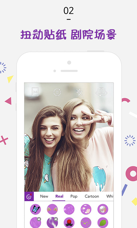 通过面部认知自动适用的神奇的可以动的贴纸及在电影或广播电视中才可以看到的小剧场效果,现在就可以用智能手机享用啦.