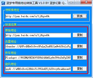 当前位置:星空最新网上盘口网络工具下载工具 → 蓝梦专用链地址转换工具 1.0 绿色版