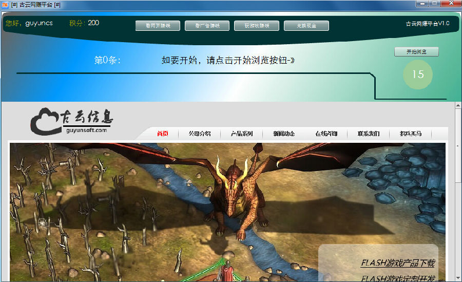 古云网赚平台正式推出,注册用户登陆后,可以通过浏览各种广告、推广网页、玩游戏等方式获得积分奖励,当积分到达一定数额,即可申请兑现现金。请注意,在注册用户信息的时候,信息一定要填写完整,以免现金发放错误!