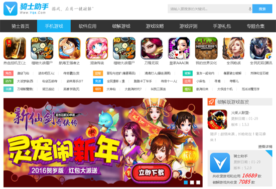 骑士助助手,游戏、应用一键破解,是最好的安卓游戏破解资源下载平台,让你再也不用为没有充钱玩不过RMB玩家而担忧啦!