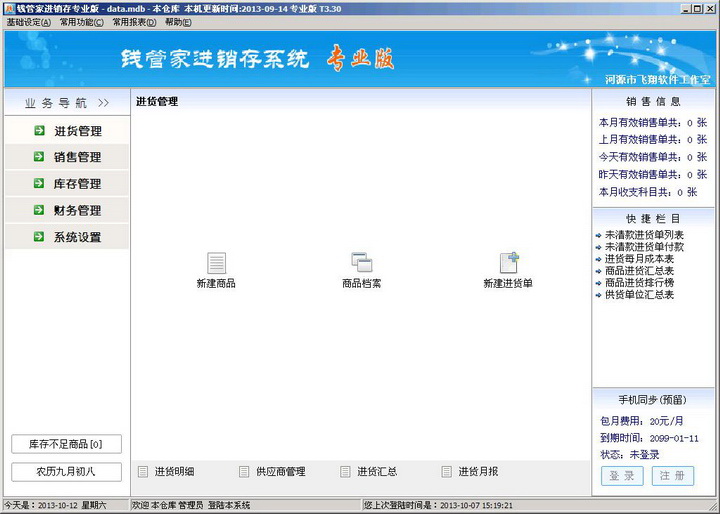 库存管理软件免费版下载。库存管理软件是专为企业、店铺、个人开发的进、销、库存管理、理财、员工管理的工具软件,具有商品管理、进销存单据管理、库存管理,利润查看,员工成绩图表查看,月销售成绩图表比较查看,