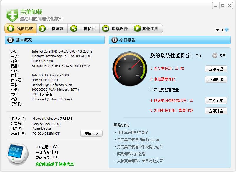 您的硬件配置足够仍感觉计算机不够强劲吗?埋怨运行速度太慢吗?担心系统不安全吗?希望保留数据隐私吗?想及时清理机器内的“垃圾”吗?“完美卸载”软件,协助您解决这些问题,它是系统维护的瑞士军刀.