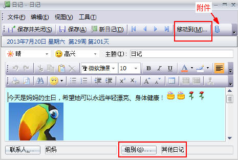 请打开编辑该日记界面,然后单击工具栏上的“移动到”命令更改该日记的时间。