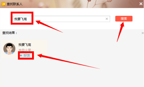 4、弹出查找联系人窗口,你可以输入对方昵称或者用户名进行查找