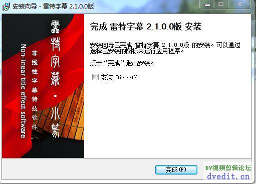 14、可以不安装directx,点击“完成”结束雷特小篆字幕的安装。