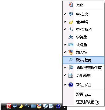 或使用快捷键Ctrl+F8对正在输入的词语通过默认搜索提供商进行搜索。您可以通过语言栏定制在状态条上显示默认搜索图标