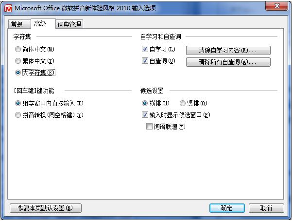 3.在“字符集”下选择相应的字符集 。微软拼音输入法为您准备了三套字符集: