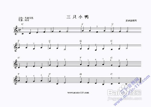 先作右手在原位的断音练习。从这里开始,你将接触到较多的五线谱曲子。如果你已经懂得看了,开始用的曲谱对你来说简直是“小儿科”;如果你不懂,那就得补学点看谱的知识了(附:五线谱常识,供不懂看谱的补学)