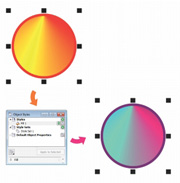 可以向矢量插图添加创新效果!CorelDRAW X6 引入了四种造型工具,它们为矢量对象的优化提供了新增的创新选项。新增的涂抹工具使您能够沿着对象轮廓进行拉长或缩进,从而为对象造型。新增的转动工具使您能够对对象应用转动效果。并且,您可以使用新增的吸引和排斥工具,通过吸引或分隔节点,对曲线造型。