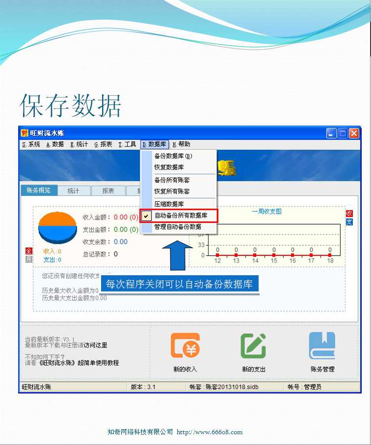 旺财流水账可以帮助您建立多个账套,记录账单简便支持自定义分类和图形报表显示,让管理的你财政收入支出变得如此简单。
