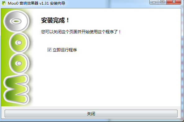 安装完成,勾选立即运行程序,点击关闭,完成安装。