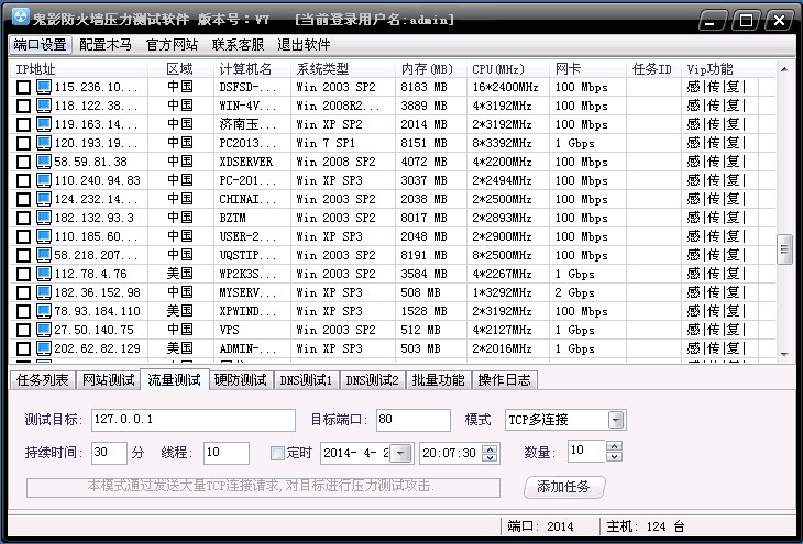 鬼影防火墙压力测试软件是一款能够快速测试防火墙压力的测试软件,压力测试模块稳定不掉机,兼容性非常好,稳定运行,不占用任何资源,防误报能力强,服务端纯SDK打造,无MFC类,注册服务启动,安全稳定,具有高效率发包率,不死锁等特点。