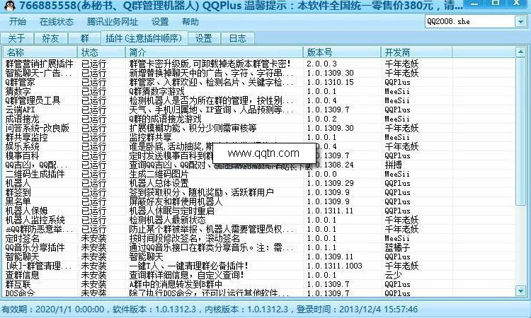 秘书QQ机器人后台提供可视化操作!每个插件都有使用说明,前台提供完整的操作菜单!手机、电脑可同时进行控制!秘书QQ机器人VIP版无需挂机,无需安装,购买即可使用!提供在线人工技术支持!