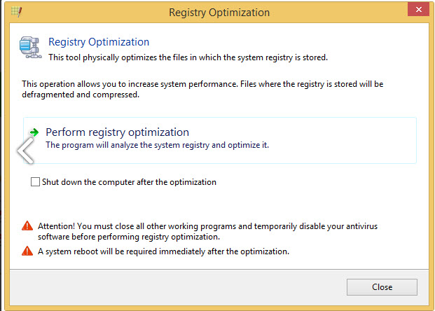 生活是一种实用的注册表碎片和压缩注册表。该方案优化注册表,并迅速和有效地显示此操作结果的可视化。