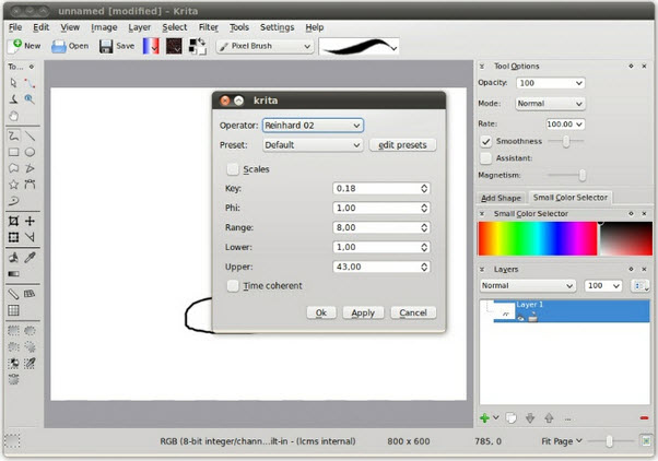 Krita这款免费的开源软件正是你所需要的,它允许你在KDE桌面环境下编辑各类图片。程序拥有各种高级编辑工具,其操作界面不仅在外观上与Adobe Photoshop十分相似,内置的工具也和Photoshop差不多。
