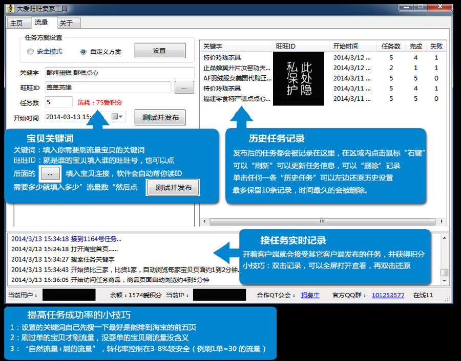 流量任务操作:宝贝关键词、历史任务记录、接受任务记录、提高任务成功率技巧