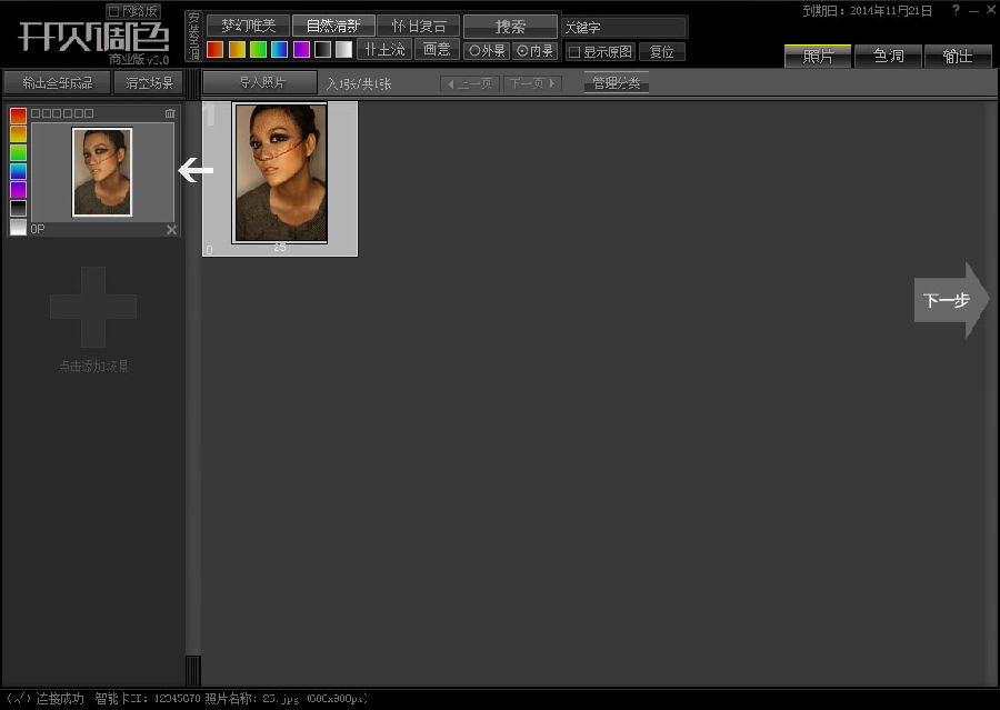 开贝调色软件适用于各大专业影楼用来后期制作处理照片调色软件,超强照片调色,带来惊艳效果,自动校色并美肤后,选择合适的色调快速输出成品,简洁的用户操作界面,超强的自动校色功能,世界顶级智能美肤引擎,快速调出专业的影楼照片效果。