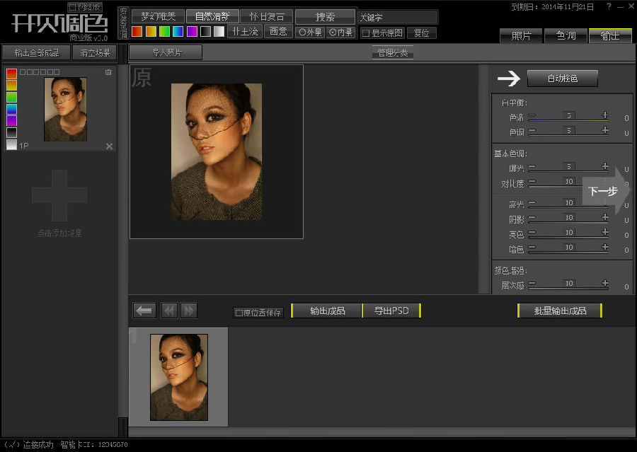 分析,自动调整照片的颜色、色阶、对比度、亮度等信息,对照片进行高速自动校色。