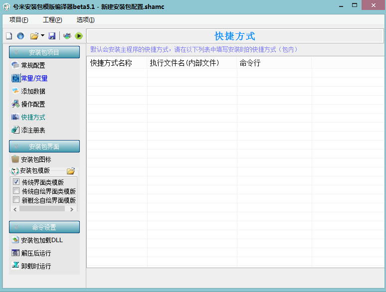 5、快捷方式,快捷方式名称、执行文件名、命令行