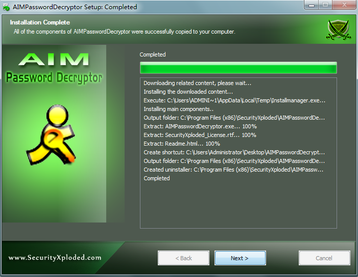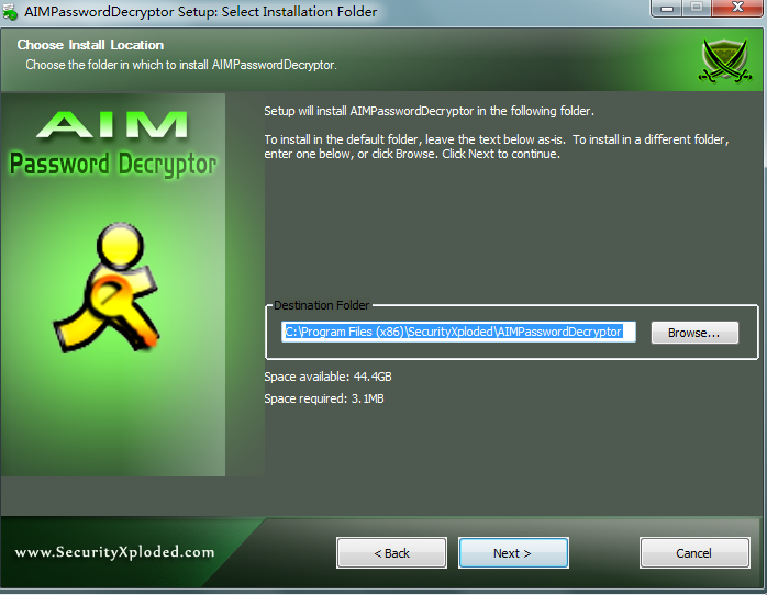 截图1:AIMPasswordDecryptor显示恢复帐户密码的目的(AOL的即时通讯)。