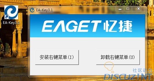eakey是忆捷官方发布的一款文件加密软件,工具使用简单,需要安装,加密功能集成在右键菜单,非常强大,EA-Key3.1采用的是AES256位加密算法对文件进行加密。可以一键安装右键菜单,卸载右键菜单。