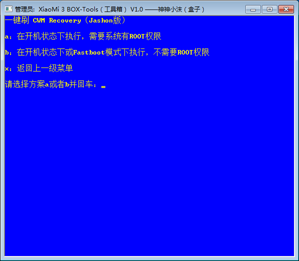 它是一款小米3刷机工具箱,专门针对小米3开发使用的,XiaoMI 3 BOX Tools具有一键root、一键重启recovery模式、一键救砖、一键刷机、一键修复小米3等相关功能,是小米最棒的工具箱。