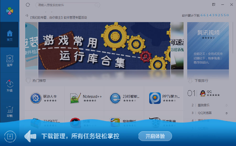 qq软件管理独立版是一款从QQ电脑管家官方版中独立提取出来的版本,不用安装QQ电脑管家,就可以独立运行QQ软件管理程序。qq软件管理是一款专业的软件管家,海量软件轻松管理,是用户下载、安装、升级、卸载软件的强力管理工具。腾讯软件管理推出了全新界面的8.x版本,新版本拥有更好的性能,更快的软件搜索安装速度。