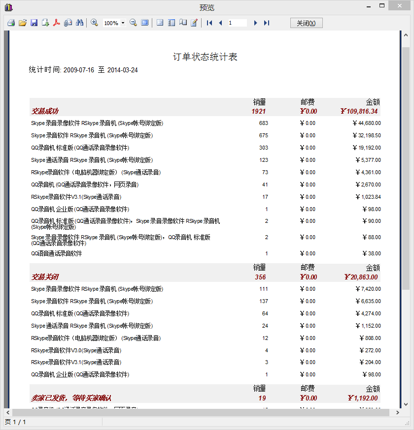 • 淘宝卖家销售订单统计系统1.1 绿色版