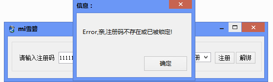 2、运行mi雪碧,点击注册,会弹出注册码不存在或已被锁定,这是软件为破解状态。