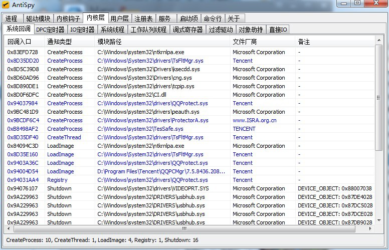 11.CreateProcess、CreateThread、LoadImage、Registry、Shutdown等Notify Routine信息查看和删除;