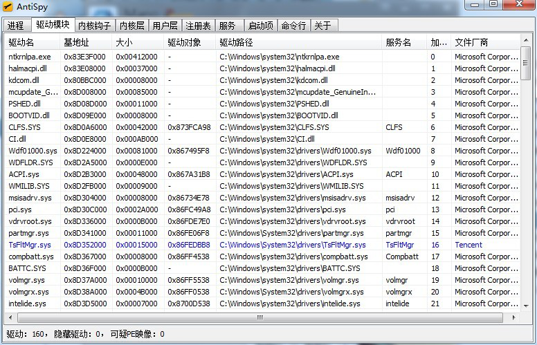 16.磁盘、卷、键盘、网络层等过滤驱动的枚举;