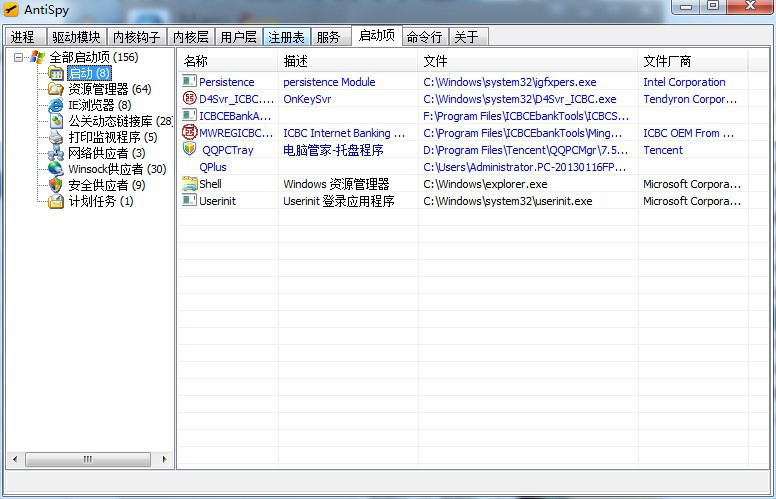 平时还可以简单的将其当做增强版任务管理器使用,查看进程、结束进程、删除驱动文件、停止服务、解锁注册表、管理器启动项等等都可以轻而易举的实现,此工具支持WinXP、2003/2008、Win7(32位)、Win8(32位)操作系统,界面语言支持简体中文和英文,随着操作系统的语言而自适应。