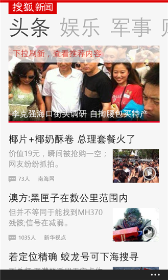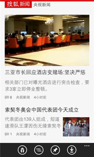 搜狐新闻客户端wp版,为用户提供第一手的新闻资讯,搜狐新闻拥有强大的媒体资源,搜狐新闻先知道,海量媒体等您来搜狐新闻是现在最流行的新闻类APP,是央视新闻独家合作伙伴。海量媒体账号等您关注,免费独家资源任您阅读。每天上班、下班、睡前用手机要做的三件事:刷微博、聊微信、看搜狐新闻客户端。
