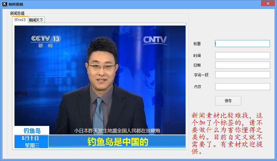 2、支持自定义,提示框素材有四个,新闻素材有两个,可以制作新闻恶搞。那些什么字体大小,颜色度可以自定义。