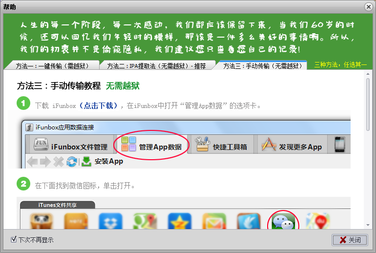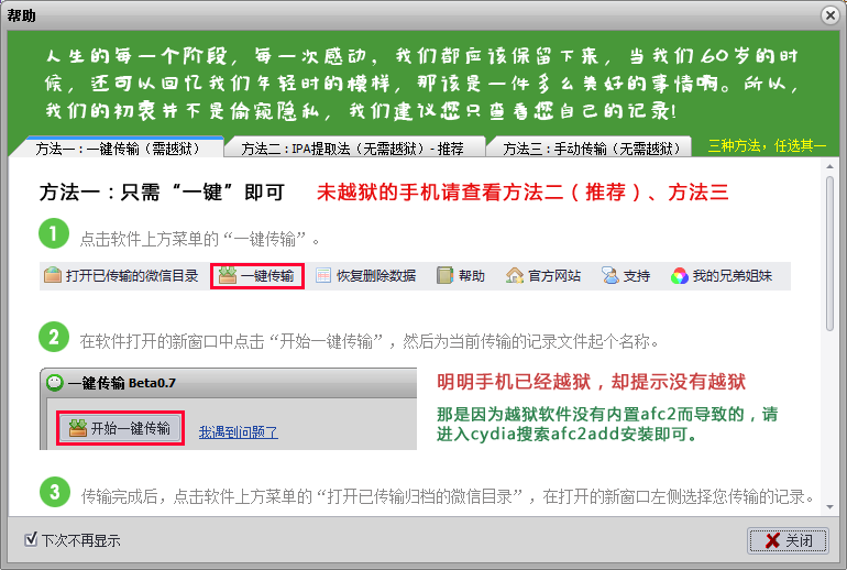 软件提供三种方法供用户选择,任选其一即可,点击软件上方的帮助菜单按钮即可查看到三种详细方法!