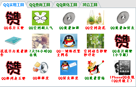 爱Q名片综合互赞大师是一款超全功能的QQ软件,提供了多项QQ实用工具、查询工具、美化工具,以及其它相关工具,如我们常见的名片刷赞、动态秒赞、空间人气、评论、iPhoneQQ在线等多个功能,在软件中全部都有,是一款综合的QQ工具箱,更多精彩的功能等你来体验!