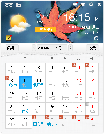 当前位置:星空最新网上盘口系统工具桌面工具 → 悠悠日历 2.0.0.1204 官方版