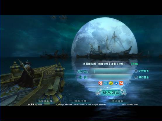3、全部设置完毕可以点击开始游戏进入完美世界了!选择您想要进入的服务器,然后输入账号密码才可以哦。
