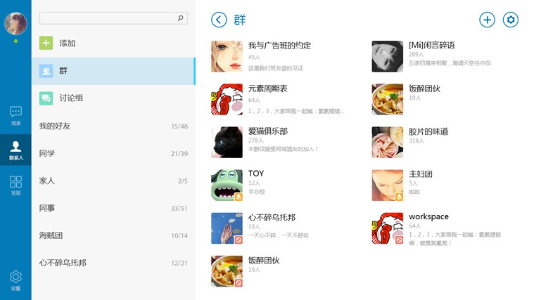 支持讨论组,与PC互通,拉几个朋友想聊就聊