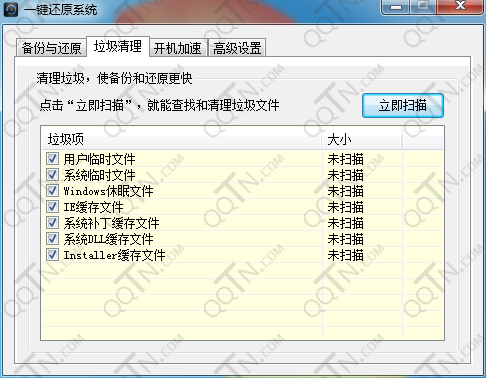 垃圾项:用户临时文件、系统临时文件、Windows休眠文件、IE缓存文件、系统补丁缓存文件、系统DLL缓存文件、Installer缓存文件