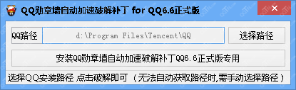 2、打开QQ6.6正式版勋章墙破解补丁,工具会自动获取QQ安装目录,如果无法获取,请手动选择路径