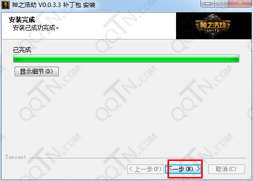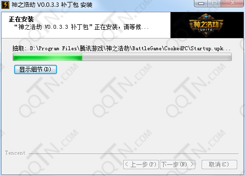 4.将补丁安装到神之浩劫游戏的安装目录内,如:“D:\Program Files\腾讯游戏\神之浩劫”,点击“安装”