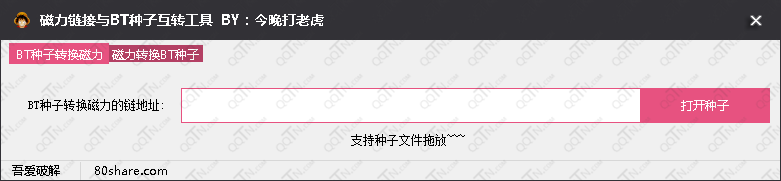 看软件名字大家都应该明白这款软件是干什么的吧。可以实现BT种子与磁力链接相互转换,由于各种原因,有时候需要的资源是BT种子文件或是磁力链接,那么使用本工具就能将这两种类型轻松进行转换。时刻满足你的需求。