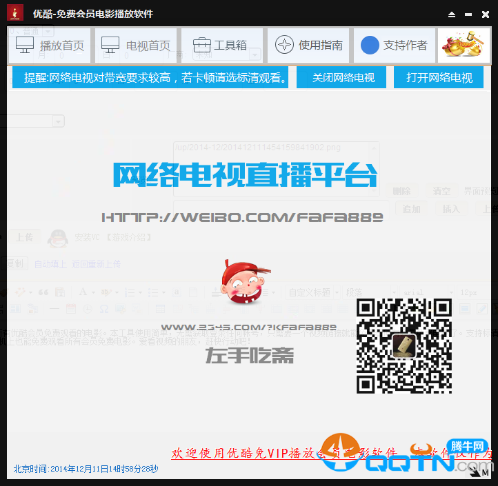 2、网络电视直播平台对带宽要求较高,若卡顿请选标清观看
