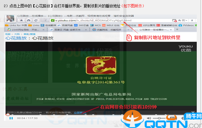 2、点击上图中的如心花路放会打开播放界面,复制该影片的播放地址