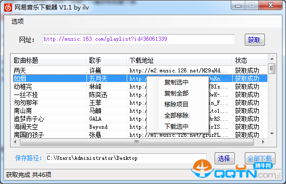 支持各类列表,单曲,热门歌曲,榜单,专辑,一键获取批量下载