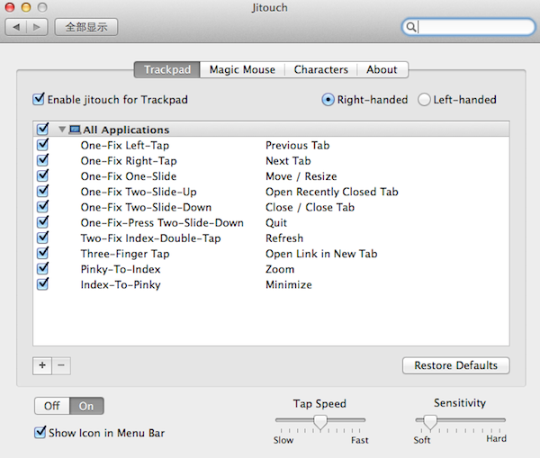Jitouch是Mac平台上一款触摸板和Magic Mouse的手势增强工具。
